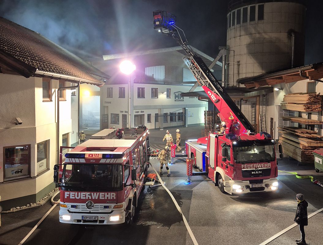 Die Zimmereihalle, der Spänesilo, das Schützen der restlichen Gebäude sowie einige Bergungen waren das Ziel der Übung.